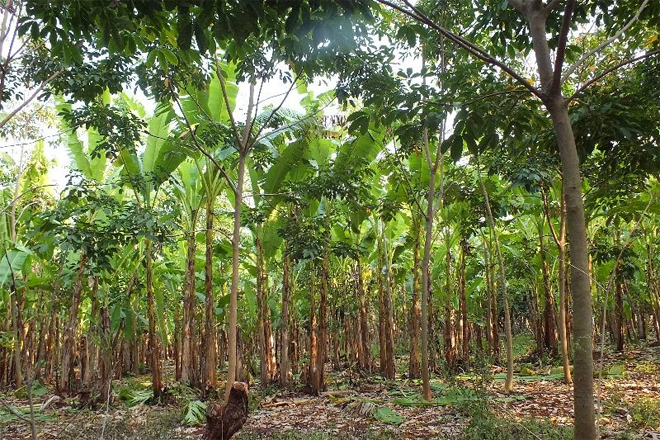 4.ปลูกกล้วย โดยพูนดินขึ้นมากลบโคนต้น 1 คืบ หรือขุดหลุมปลูกกว้างและลึก 1 ศอก ระยะปลูก 1 x 1 วา พื้นที่ 1 ไร่ ปลูกได้ประมาณ 400 ต้น จากนั้นรดน้ำ 5 วัน/ครั้ง ประมาณ 1 เดือน จะเริ่มแตกยอดอ่อน ซึ่งยาฟูราดานจะเริ่มหมดฤทธิ์พอดี