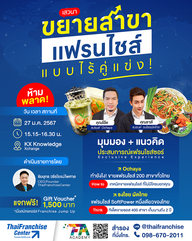 - เสวนา ขยายสาขาแฟรนไชส์ แบบไร้คู่แข่ง!