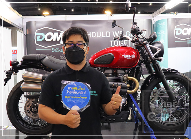 ลองไปสำรวจแฟรนไชส์อื่นๆ บ้างงานนี้สะดุดตามากกับ D.O.M. ซึ่งเป็นธุรกิจของนักแสดงรุ่นใหญ่อย่างดอม เหตระกูล ที่หันมาจับธุรกิจ DOM (Delight of Motorcyclist: Professional Motorcycle Maintenance & Services) หรือ แฟรนส์ไชส์ศูนย์บริการมอเตอร์ไซค์แบบครบวงจร ที่มาที่ไปของแฟรนไชส์นี้ก็มาจากความชอบและประสบการณ์ในการขี่บิ๊กไบค์แต่เห็นว่าศูนย์บริการยังมีไม่ครอบคลุมความต้องการ ธุรกิจนี้น่าจะถูกใจคนรักการขี่มอเตอร์ไซด์อย่างมาก