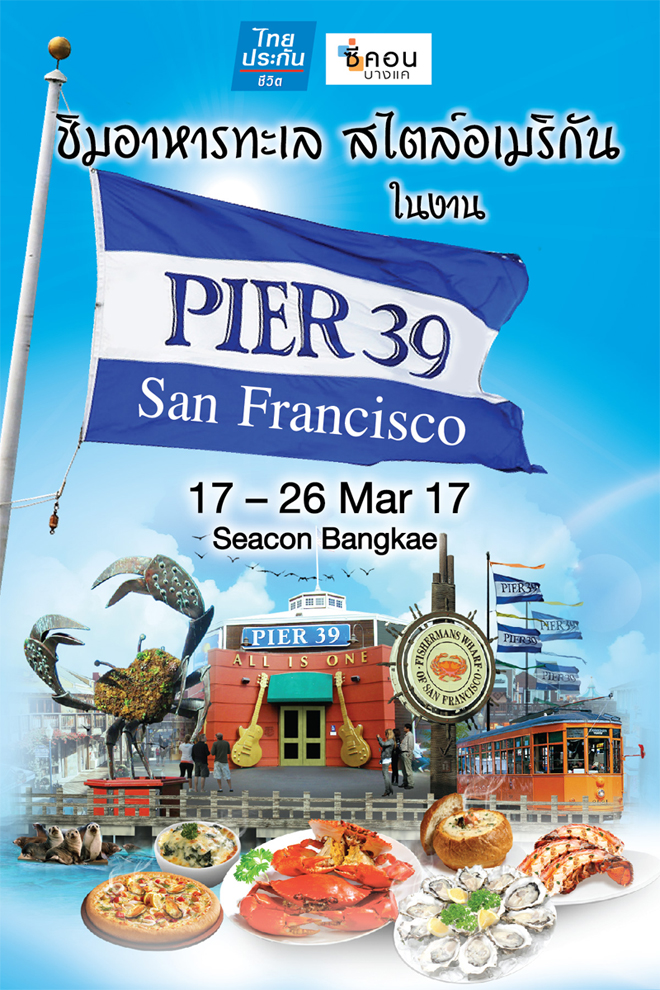 งานอาหารทะเลสไตล์อเมริกัน ที่คนรักอาหารทะเลตัวจริงต้องไม่พลาด ในงาน “Pier 39 San Francisco” ระหว่างวันที่ 17 – 26 มีนาคม 2560 ณ ลานกลาง และฮอลล์บี ชั้น 1 ศูนย์สรรพสินค้าซีคอน บางแค ถนนเพชรเกษม