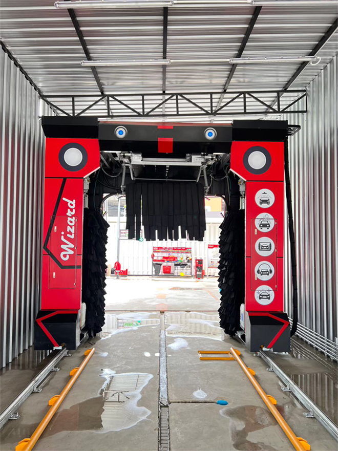 เป็นรูปแบบของ Tunnel Car Wash หรืออุโมงค์ให้รถเคลื่อนที่เข้าไปแล้วมีโปรแกรมในการล้างรถ ข้อดีของระบบนี้คือประสิทธิภาพในการล้างประมาณ 1.30 นาที/คัน รับรถลูกค้าในชั่วโมงเร่งด่วน หรือสามารถรับลูกค้าต่อวันได้มากขึ้นดีกว่าการล้างรถแบบธรรมดาที่ใช้เวลาในการล้างสูงมาก แถมระบบล้างรถอัตโนมัติของดับเบิ้ลยู บาย วิซาร์ดเป็นระบบที่คิดค้นมาอย่างดีมั่นใจในเรื่องความสะอาดและไม่ทำให้รถมีริ้วรอย