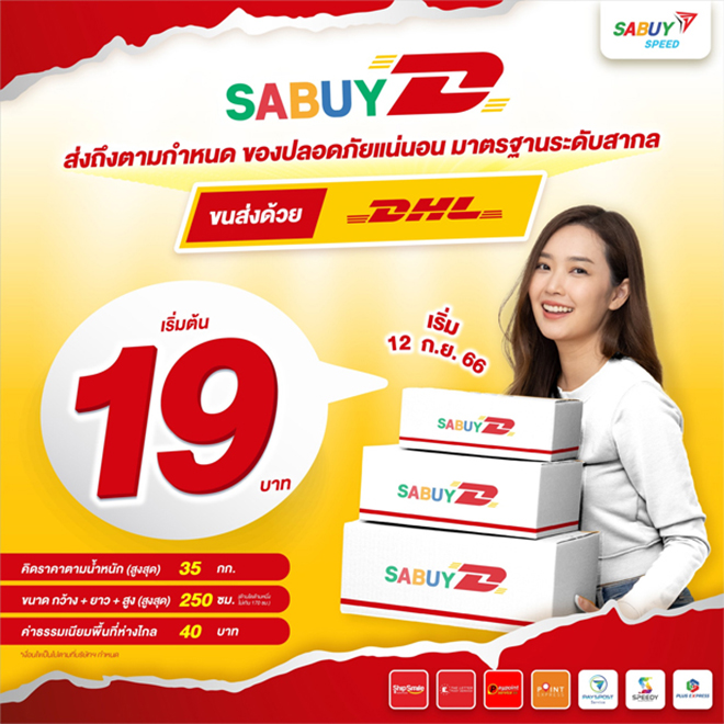 SABUY SPEED x SABUY-D เป็นบริการล่าสุดที่เปิดตัวอย่างเป็นทางการเมื่อวันที่ 12 กันยายน ที่ผ่านมา โดยให้ผู้ใช้บริการสามารถจัดส่งสินค้าได้สะดวกปลอดภัยในราคาเริ่มต้นแค่ 19 บาท ซึ่งรองรับน้ำหนักได้สูงสุด 35 กิโลกรัม ถือได้ว่าเป็นอีกบริการในการจัดส่งที่ได้มาตรฐานระดับสากลส่งถึงตามกำหนด พัสดุถึงปลายทาง สภาพสมบูรณ์ ปลอดภัย ผู้สนใจสามารถใช้บริการได้ที่ขนส่งในเครือ SABUY SPEED ที่มีมากกว่า 21,000 สาขาทั่วประเทศ