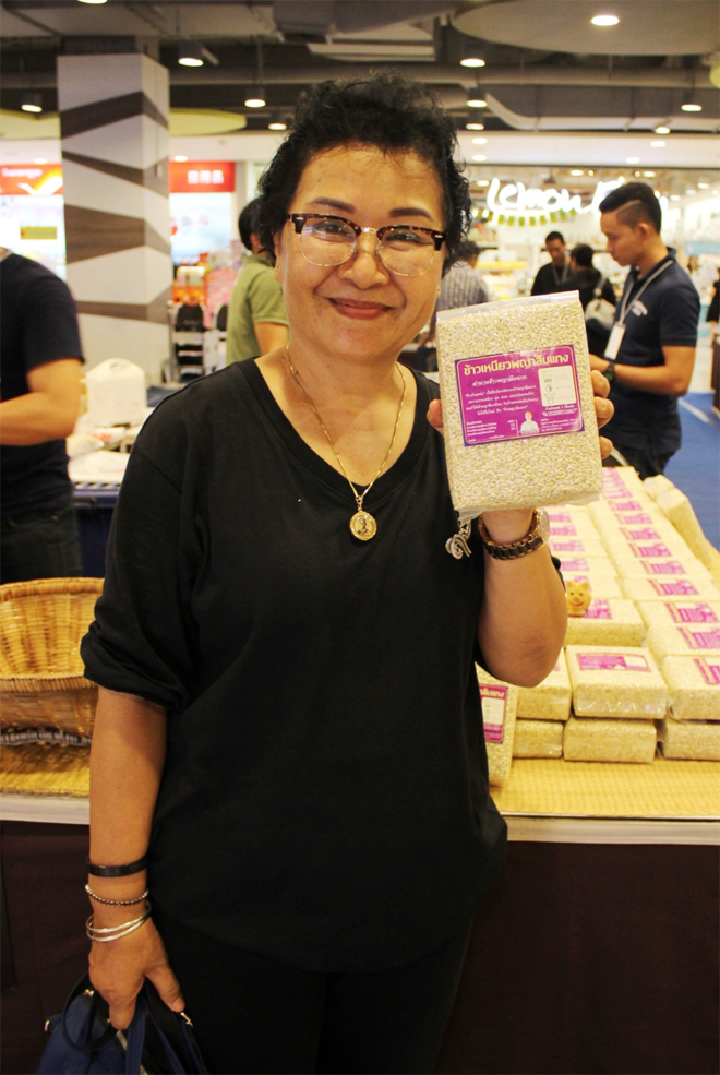หนึ่งในประชาชนที่เข้ามาใช้บริการในศูนย์สรรพสินค้าซีคอนสแควร์ นางกาญจนา พัฒนธีรบูรณ์ ได้สนใจเลือกซื้อข้าวที่นำมาจำหน่ายในตลาดค้าข้าวแห่งนี้ กล่าวว่า