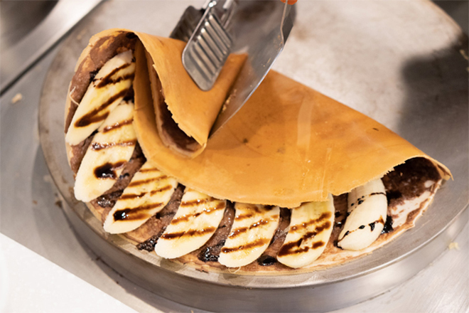 ส่วนเครปเย็นแป้งจะนุ่ม ทานคู่กับไอศกรีมและวิปปิ้งครีมแล้วละลายในปากทันที ซึ่งทางร้านได้พัฒนาสูตรแป้งเครปมาจากสูตรดั้งเดิมของญี่ปุ่น ให้ถูกปากคนไทยมากขึ้น อีกทั้ง Olino Crepe & Tea ยังมีจุดดึงดูดลูกค้าที่น่าสนใจ นั่นก็คือ “กล้าท้าให้ลองแป้งเปล่า” ซึ่งคอนเซ็ปต์นี้ถือว่าเรียกร้องความสนใจได้ดีเลยทีเดียว ส่วนตัวเครื่องดื่ม ได้ครีเอทขึ้นมาจากความใส่ใจ เน้นไปในเรื่องของความเฮลตี้ ใช้วัตถุดิบพรีเมียมนำเข้าจากต่างประเทศเช่นกัน