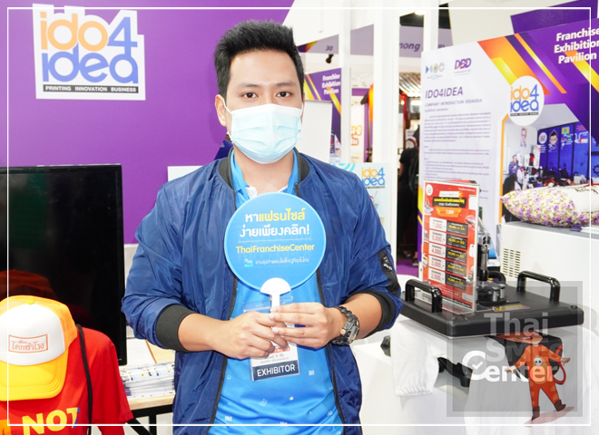 ใกล้ๆกันก็มีอีกแฟรนไชส์น่าสนใจเป็นธุรกิจติดไอเดียของ ไอดูโฟร์ไอเดีย ที่เหมาะสำหรับคนกำลังมองหาช่องทางสร้างรายได้ในยุคออนไลน์โดยมีเครื่องพิมพ์ภาพลงบนวัสดุที่หลากหลายสามารถเพิ่มมูลค่าชิ้นงานขายผ่านออนไลน์สร้างรายได้ให้เราได้เป็นอย่างดี