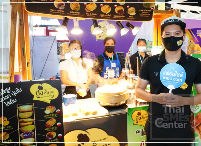 เริ่มกันที่โซนของ DBD ที่ปีนี้กระทรวงพาณิชย์พาเหรดขน 40 แฟรนไชส์การันตีคุณภาพมาให้เลือกลงทุนกันจำนวนมากครบทุกความต้องการทั้ง อาหาร เครื่องดื่ม การศึกษา ค้าปลีก บริการ โดยมีหลายแฟรนไชส์ในโซนของ DBD ที่ลูกค้าให้ความสนใจมาก เริ่มที่ ปังอั้ยยะ ปังปิ้งไส้เยิ้ม ที่ชูจุดเด่นคือขนมปังไส้เยิ้ม ชวนให้ลูกค้าที่เข้ามาใหม่ๆ เห็นแล้วหิว แถมยังราคาไม่แพงและมีแพคเกจลงทุนให้เลือกได้หลากหลายด้วย