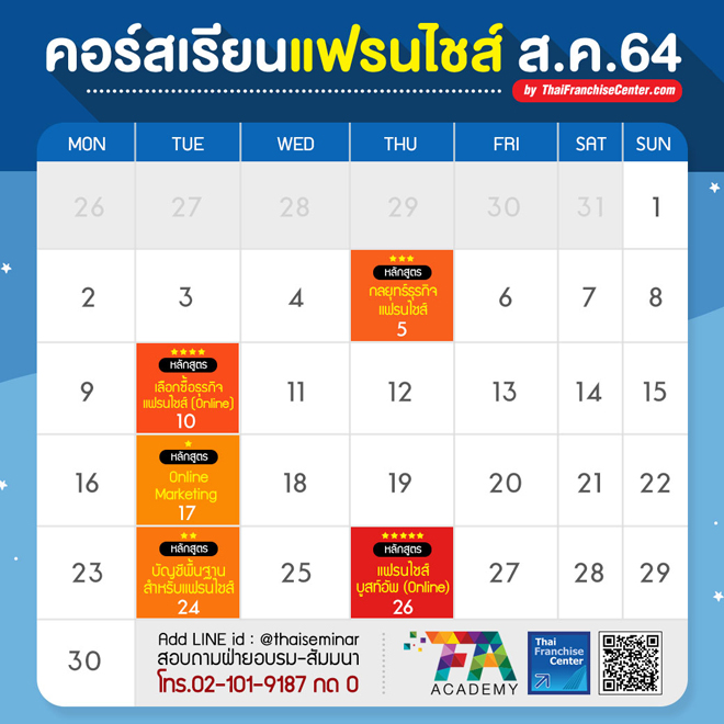 มาแล้ว! 5 คอร์สเรียนแฟรนไชส์ในเดือนสิงหาคม 2564