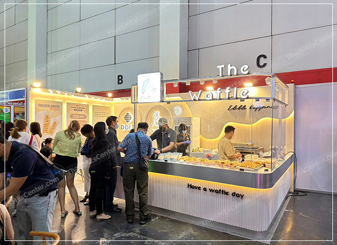 ตรงข้ามกันและอร่อยไม่แพ้กันคือบูธของ The waffle ที่ทุกคนน่าจะรู้จักกันเป็นอย่างดีนี่ก็เข้าสู่ปีที่ 19 ของธุรกิจกับสาขาทั่วประเทศกว่า 70 แห่ง แต่ยังคงคอนเซปต์อร่อยจัดเหมือนเดิม ดีแค่ไหนก็ดูจากลูกค้าแน่นร้านกันเลยทีเดียว กำไรขั้นต้นจากธุรกิจนี้กว่า 60% ใช้เงินลงทุนเริ่มต้น 465,000 บาท แต่รับประกันได้ว่าขายดีแน่ แถมเขามีทีมงานดูแลทุกคนเป็นอย่างดีด้วย