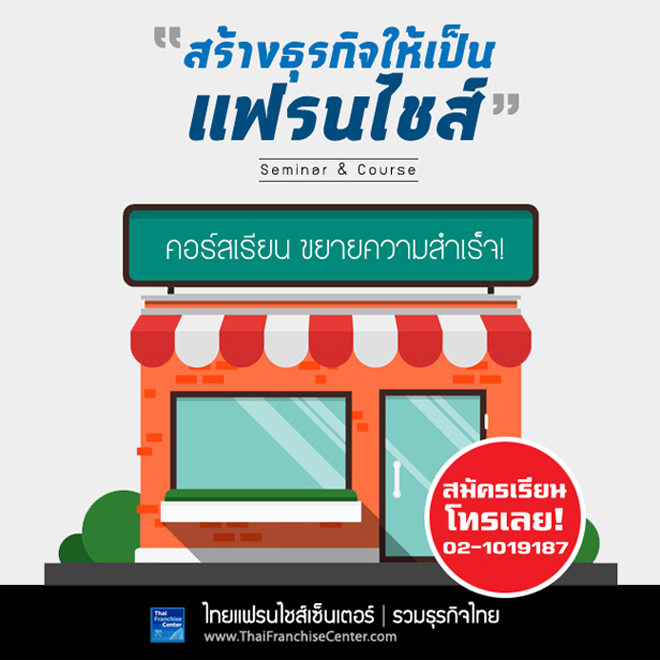 ทาง “ไทยแฟรนไชส์เซ็นเตอร์ หรือ ไทยแฟรนไชส์อะคาเดมี่” ได้ร่วมเป็นพันธมิตรกับสถาบันฯ ต่าง ๆ ในการจัดอบรมสร้างอาชีพ โดยในช่วงเดือนนี้มีคอร์สเรียนที่น่าสนใจมากมาย ทั้งอาหาร เครื่องดื่ม รวมถึงการเริ่มต้นทำธุรกิจสำหรับ SMEs และ Franchise ทั้งนี้ ทางฝ่ายอบรม-สัมมนา จึงจัดมาให้เลือกกันมากกว่า 15 หลักสูตร หากใครที่กำลังมองหาช่องทางสร้างอาชีพ หรือ ต้องการเพิ่มเติมความรู้ ไม่ควรพลาด!