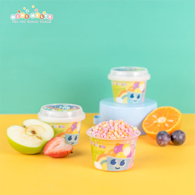 แตกต่างจาก Minimelts ที่จะเห็นไอศกรีมจิ๋วเป็นหลัก เริ่มตั้งแต่การจัดร้าน แต่งร้าน เมนูที่เป็นไอศกรีมจิ๋วหลากหลายรสชาติโดยเฉพาะมีการจัดเสิร์ฟที่เน้นสีสันความสวยงามให้ลูกค้าเลือกได้หลายรูปแบบเช่น