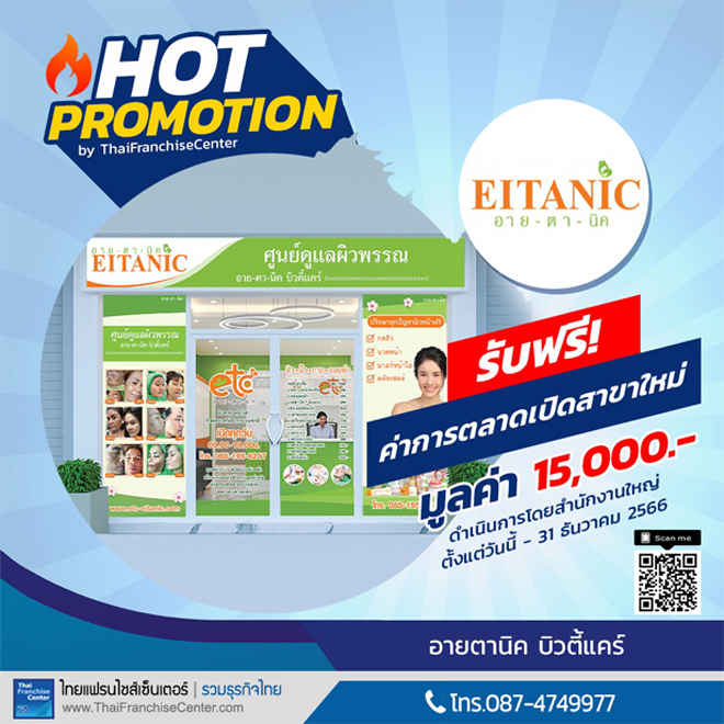 9.แฟรนไชส์ อายตานิค บิวตี้แคร์ จัดโปรโมชั่น ค่าทำการตลาดเปิดสาขาใหม่ 15,000 บาท (ดำเนินการโดยสำนักงานใหญ่) หมดเขต 31 ธันวาคม 2566