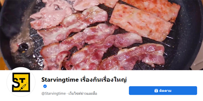 จัดเต็มสำหรับเนื้อหาของ Starvingtime เรื่องกินเรื่องใหญ่สมชื่อ ไม่ว่าจะเบเกอรี่ อาหารคาวหวาน ร้านรถเข็น อาหารทะเล ไอเดียอาหารแปลกใหม่ หรือร้านอาหารที่ไหนน่าสนใจอย่างไร จะตามไปชิมไปให้ถึงที่มีคนติดตามเพจนี้กว่า 5,063,392 คน