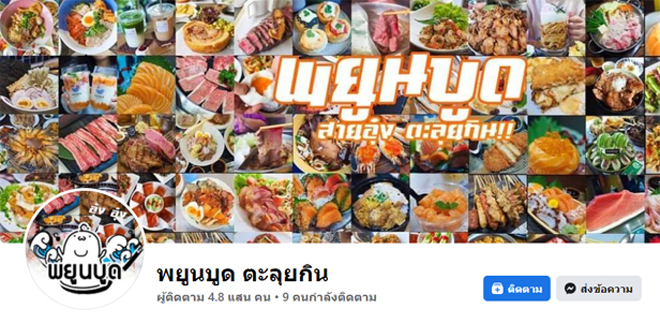 สำหรับใครที่เป็นสายกิจต้องไม่พลาดที่จะตามเพจนี้ เพราะเขาตระเวนในทุกพื้นที่ที่มีของอร่อย พร้อมนำเสนอเมนูจานเด็ด อาหารแปลกใหม่ สินค้าน่าสนใจ เหมือนเป็นการกินและได้ท่องเที่ยวไปพร้อมๆกัน เรียกว่าตะลุยกินในทุกพื้นที่โดยมีคนติดตามเพจนี้กว่า 4.8 แสนคน