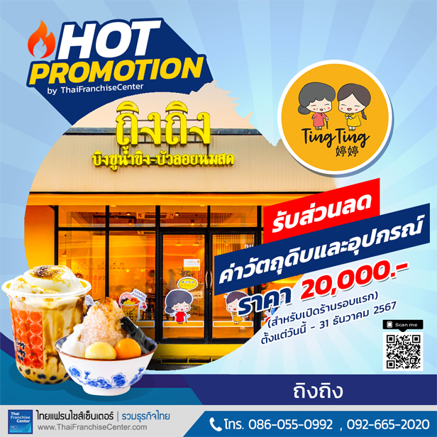 7. ถิงถิง บิงซูน้ำขิง จัดโปรส่วนลดค่าวัตถุดิบและอุปกรณ์สำหรับเปิดร้านรอบแรก 20,000 บาท หมดเขต 31 ธันวาคม 2567