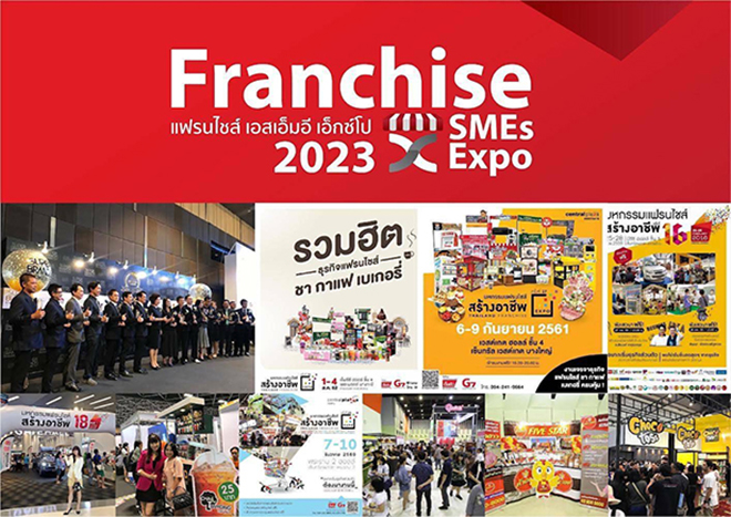 งานจัดแสดงสินค้าธุรกิจSME และแฟรนไชส์ที่จัดขึ้นอย่างยิ่งใหญ่ ต่อเนื่องเป็นประจำทุกปี ภายในงานรวบรวมธุรกิจชั้นนำจากทั่วประเทศให้คนสนใจได้เลือกลงทุนจำนวนมาก พร้อมโอกาสในการขยายธุรกิจของผู้ประกอบการ นอกจากนี้ยังมีเวทีสัมมนาและกิจกรรมให้ความรู้อีกจำนวนมาก งานจัดขึ้นระหว่างวันที่ 6 – 9 กรกฏาคม 2566 ณ อิมแพ็คเมืองทองธานี ฮอลล์ 7-8