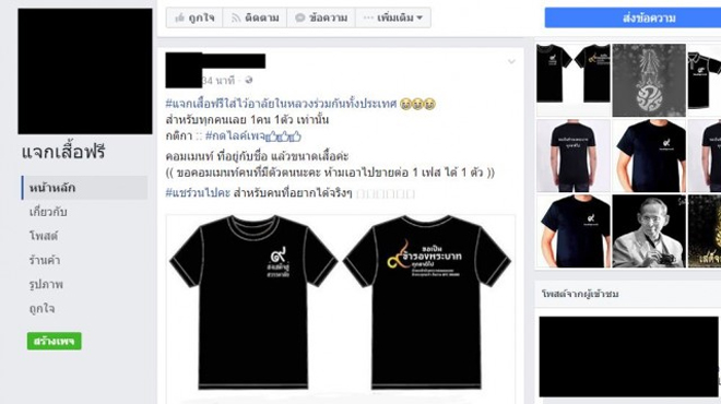 ลักษณะของเพจต่าง ๆ ที่มักใช้วิธีการแจกเสื้อสีดำเป็นหลักและมีเงื่อนไขต่าง ๆ ให้ผู้ใช้ Facebook มาร่วมกัน Like และ Share เป็นวงกว้าง ซึ่งมองในแง่ของการตลาดก็นับเป็นการสร้างกระแสที่หวังผลอย่างมาก