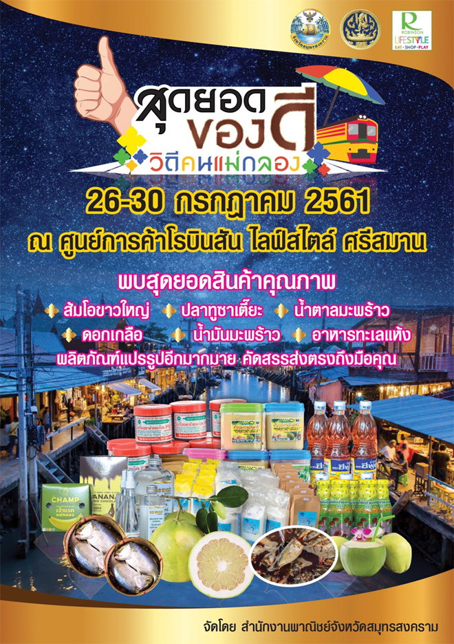สำนักงานพาณิชย์จังหวัดสมุทรสงคราม ขอเชิญร่วมงาน สุดยอดของดี วิถีคนแม่กลอง พบสุดยอดสินค้าคุณภาพจากชาวแม่กลองที่คัดสรรส่งถึงมือคุณ