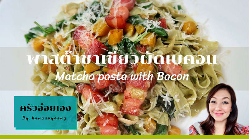 สูตรและวิธีการทำ พาสต้าชาเขียวผัดเบคอน
