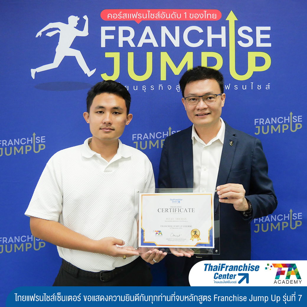 ถือเป็นอีกหนึ่งบริการจากไทยแฟรนไชส์เซ็นเตอร์ที่มุ่งมั่นตั้งใจในการพัฒนาวงการแฟรนไชส์และSMEsให้มีการเติบโต อย่างถูกต้อง อันเป็นประโยชน์โดยรวมทั้งต่อตัวเองและประเทศต่อไป สำหรับท่านใดที่พลาดคอร์สอบรมในรุ่นที่ 7 เตรียมพบกับ คอร์ส Franchise Jump Up รุ่น 8 ที่จะจัดขึ้นในปี 2568 นี้อย่างแน่นอน