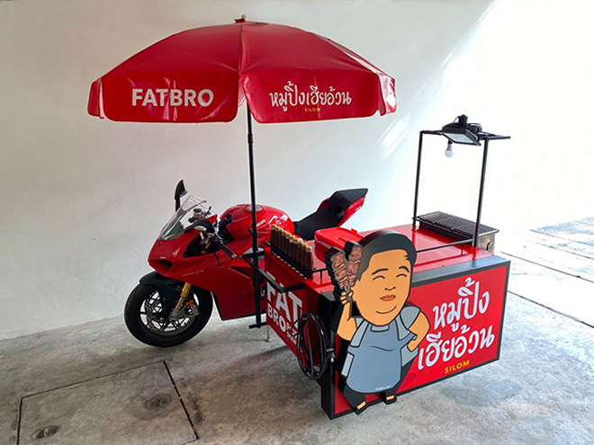 สิ่งที่จะได้รับ เช่น เตาเเก๊ส, หมูปิ้งเฮียอ้วนพรอ้มย่าง 200 ไม้ (ขายหมดได้ทุนคืนทันที 2,400บาท), กระติกข้าวเหนียว, ถาดสแตนเลสเตรียมหมู, ขวดบีบน้ำจิ้ม