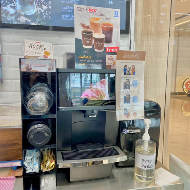 เช่น เมนูกาแฟร้อน อเมริกาโน่ เอ็กซ์เพรสโซ่ มอคค่า ลาเต้ ราคาอยู่ที่แก้วละ 25 บาท ถ้าเป็นเมนูกาแฟเย็นอยู่ที่แก้วละ 35 บาท นอกจากนี้ ยังมีเมนูเครื่องดื่มตามเทศกาลต่างๆ เช่น เมนูใหม่ในช่วงเทศกาลวาเลนไทน์ มัทฉะสตรอว์เบอร์รี เป็นการผสมผสานกันระหว่างน้ำสตรอว์เบอร์รีและอุจิมัทฉะ รสชาติเปรี้ยวหวาน