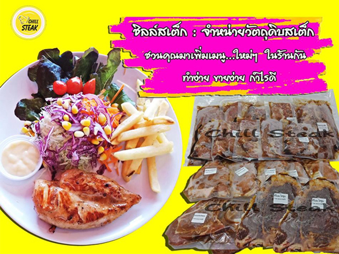 ชิลล์ สเต็ก ทำให้การทำสเต็กเป็นเรื่องง่ายสำหรับคุณ เราพร้อมจำหน่ายวัตถุดิบสเต็กแช่แข็งพร้อมปรุงหลากหลายเมนู เช่น สเต็กหมู สเต็กไก่ สเต็กปลา สเต็กเนื้อโคขุน เมนูทานเล่น น้ำสลัด น้ำซอสต่างๆ และเรายังเลือกคัดสรรแต่วัตถุดิบที่ดี และมีคุณภาพ พร้อมด้วยระบบจัดเก็บวัตถุดิบ และระบบจัดส่ง ที่มีมาตรฐานสู่ครัวคุณ