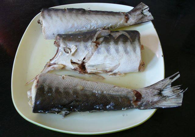 - นำปลาน้ำดอกไม้ไปนึ่งให้สุกก่อน แล้วแกะเนื้อปลาออกมาค่ะ