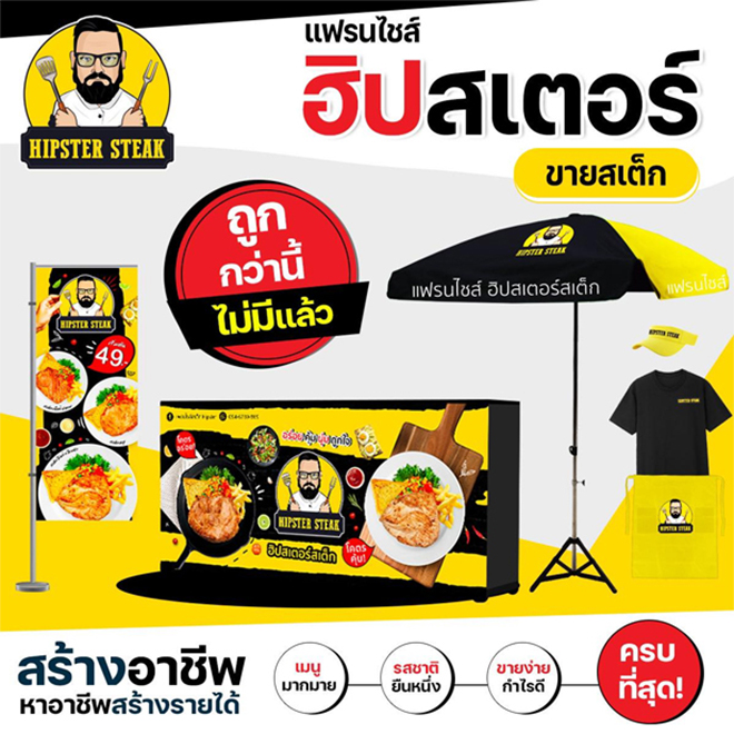 แฟรนไชส์สเต็กที่สามารถเริ่มต้นและสร้างอาชีพให้ทุกคนได้ด้วยเงินลงทุนที่ไม่สูงมาก หรือคนที่อยากมีธุรกิจเป็นของตัวเอง แต่มีงบประมาณที่จำกัด รสชาติยืนหนึ่ง คืนทุนตั้งแต่เริ่ม จะเปิดร้าน ขายริมทาง หรือขายตามตลาดนัด ด้วยวัตถุดิบที่มีคุณภาพ รสชาติติดปาก อร่อยติดใจ ลูกค้าที่มาทานครั้งแรกต้องกลับมาทานซ้ำ แพ็คเกจเริ่มต้นราคาถูก ตอบโจทย์ในยุคเศรษฐกิจปัจจุบัน จึงทำให้หลายๆ คนตัดสินใจซื้อแฟรนไชส์ฮิปเตอร์สเต็กเพื่อสร้างอาชีพ สร้างรายได้ในยุคนี้