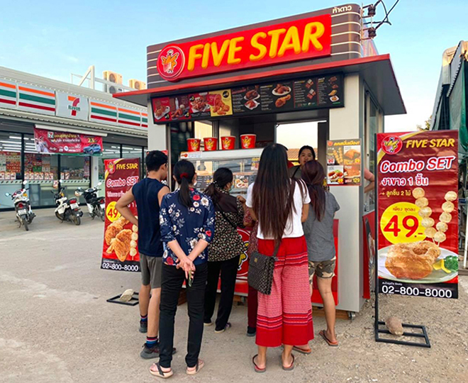 หนึ่งในแฟรนไชส์ฟาสต์ฟู้ดที่โดดเด่นมาตลอด คือ ธุรกิจห้าดาว ของบริษัท ซีพีเอฟเรสเทอรองท์ แอนด์ ฟู้ดเชน จำกัด เพราะแบรนด์มีประสบการณ์การดำเนินกิจการในไทยมานานกว่า 30 ปี และมีการเติบโตอย่างต่อเนื่องกว่า 6,000 สาขา ครอบคลุมพื้นที่ทั่วประเทศ และยังไปต่อกว่า 1,600 สาขาในต่างประเทศทั้งประเทศเวียดนาม อินเดีย ลาว และกัมพูชา