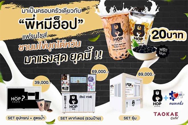 แฟรนไชส์ชานมไข่มุก ที่ซื้อง่ายขายคล่อง ในราคาประหยัด 20 บาทฟรีไข่มุก เป็นอีกแฟรนไชส์ที่เติบโตรวดเร็วมีสาขาทั่วประเทศกว่า 200 แห่ง มีแพคเกจลงทุนให้เลือกตามต้องการ งบในการลงทุน 39,000 – 89,000 บาท ไม่เก็บค่าธรรมเนียมรายปี ไม่มีส่วนแบ่งจากยอดขาย สามารถลงทุนเปิดร้านได้ทันที โทร.063-878-1333 , 097-203-0580 (คุณจาตุรนต์)