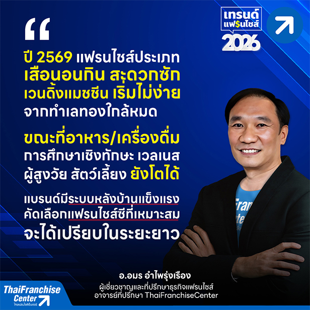 ขณะเดียวกัน อ.อมร เน้นย้ำว่า สิ่งที่เจ้าของแบรนด์แฟรนไชส์ไทยจำเป็นต้องเร่งดำเนินการอย่างจริงจังในปี 2569 คือ การสร้างระบบหลังบ้านให้แข็งแรงควบคู่ไปกับการสร้างแบรนด์ ไม่ว่าจะเป็นระบบปฏิบัติการในร้าน ระบบซัพพลายเชน ระบบควบคุมคุณภาพมาตรฐาน ระบบฝึกอบรม และระบบซัพพอร์ตแฟรนไชส์ซี หากแบรนด์ใดมุ่งเน้นเพียงการขายแฟรนไชส์ โดยขาดการดูแลแฟรนไชส์ซีหลังการขาย จะยากต่อการรักษามาตรฐานและความน่าเชื่อถือในระยะยาว