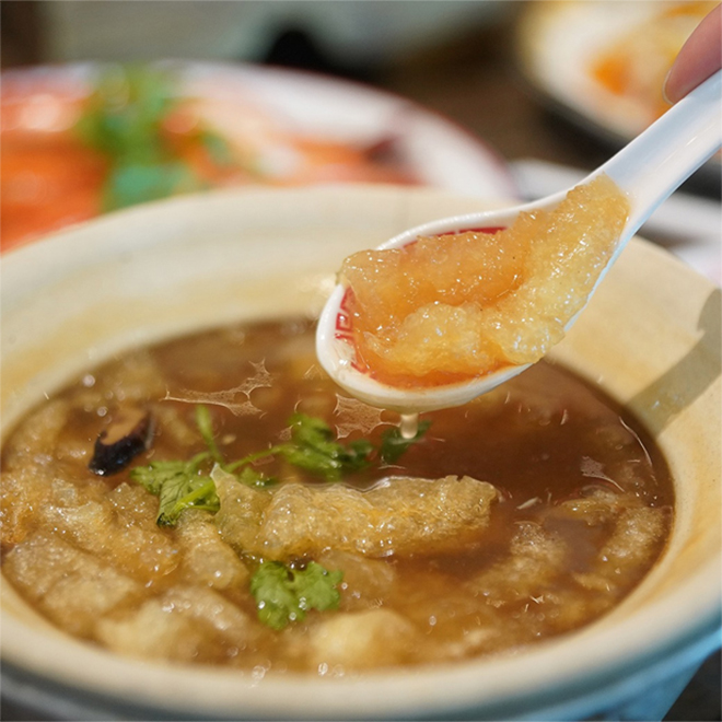 โดยเมนูมีกว่า 200 เมนู อาทิ ออเดิร์ฟ-ทานเล่น, ติ่มซำ, บะหมี่ เกี๊ยวกุ้ง, อาหารจานเดียว, หูฉลาม กระเพาะปลา เป๋าฮื้อ ขาห่าน, หมู เป็ด ไก่ เนื้อสัน, กุ้งมังกร กุ้ง หอย ปู ปลา, หม้อไฟ ต้มยำ, ผัก-มังสวิรัส, อาหารไทย และเครื่องดื่ม ของหวาน