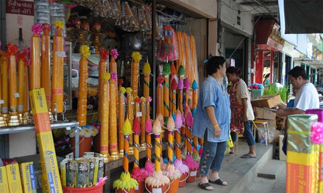 ในการหาสินค้าเข้าร้านในหมวดหมู่อื่นๆ เช่นเทียนพรรษาหรือว่าอุปกรณ์เครื่องบวชทางหนึ่งที่น่าสนใจคือการติดต่อกับบรรดาซัพพลายออร์ที่เป็นโรงหล่อเทียน หรือโรงงานผลิตเพื่อให้ได้สินค้าในราคาที่ถูกลงซึ่งจะดีกว่าการไปรับต่อมาอีกทีที่จะทำให้เรามีกำไรในการขายน้อยลงด้วย