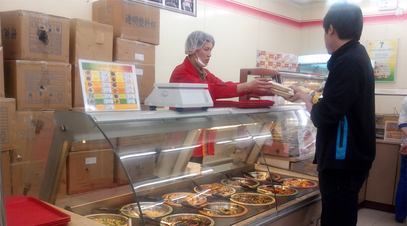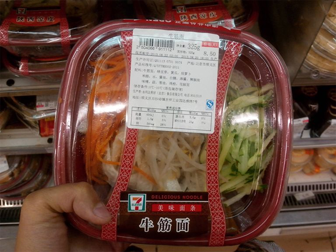 3.อาหารกล่อง และข้าวปั้นหลากหลายประเภท ถอดแบบมาจากญี่ปุ่นแต่ที่ไม่ต้องหวังคือการเห็นเนื้อปลา เนื้อกุ้งชิ้นโตๆ เพราะที่เมืองจีนวัตถุดิบเหล่านี้แพงมาก เพื่อประหยัดต้นทุนจึงเน้นที่ข้าวมากกว่าการสอดไส้แบบต่างๆ