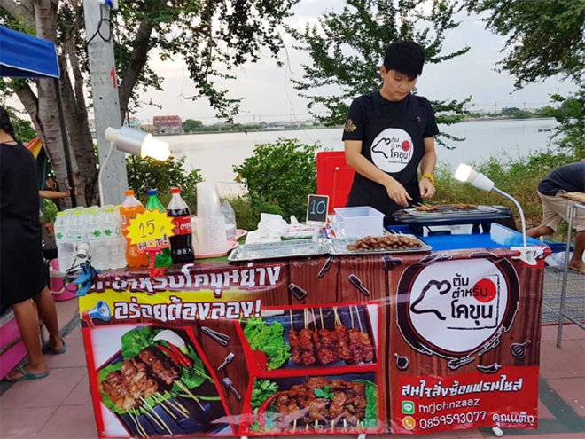 ไม่มีอะไรที่ขายง่ายไปกว่าอาหารปิ้งย่าง อุปกรณ์ก็ไม่เยอะแต่ขยันและตั้งใจทำจริงๆ ยังไงก็ขายได้ดีมีกำไร โดยเฉพาะถ้าลงทุนกับต้นตำหรับโคขุนย่างที่มีแพคเกจลงทุนให้เลือก 3 แบบ ถูกสุดคือ 2,600 บาท สิ่งที่ได้คือเนื้อถึง 300 ไม้ ป้ายไวนิล ป้ายราคา ผ้ากันเปื้อน ลองคิดดูว่าเนื้อ 300 ไม้เอามาขายไม้ละ 10 บาท รายได้เน้นๆ 3,000 บาท ถ้าไม่มีค่าเช่าที่ขายหมดเซตแรกก็กำไรทันที และยิ่งเปิดร้านนาน