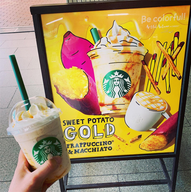 ด้วยเหตุนั้นเอง Starbucks จึงเปิดตัวเครื่องดื่มใหม่ล่าสุดในชื่อของ “Starbucks ‘Artful Autumn” เพื่อต้อนรับฤดูใบไม้ร่วงที่กำลังจะมาถึงจึงได้นำมันเทศหรือมันหวานมาเป็นส่วนผสมลงไปในเครื่องดื่มด้วย ทำให้ได้เครื่องดื่มที่เรียกว่า “Sweet Potato Gold Frappuccino” เกิดขึ้นมา