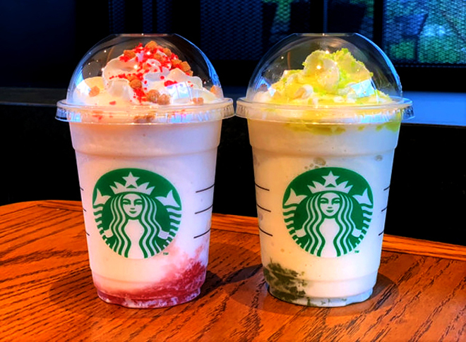 ซึ่งก็ได้เป็นหนึ่งในเครื่องดื่มเปิดตัวที่สำคัญที่สุดของ Starbucks Japan นั่นก็คือ เครื่องดื่มยอดนิยมอย่าง “Green Apple Jelly Frappuccino” กับ “Baked Apple Pink Frappuccino” ซึ่งเป็นเครื่องดื่มที่ถูกปั่นรวมกับกับแอปเปิ้ลที่มีสีเขียวเข้าด้วยกัน แล้วราดด้วยซอสแอปเปิ้ลเขียวและเยลลี่แอปเปิ้ลเขียว จึงทำให้มีกลิ่นหอมของแอปเปิ้ลเขียวตลบอบอวลทั่วภายในปาก