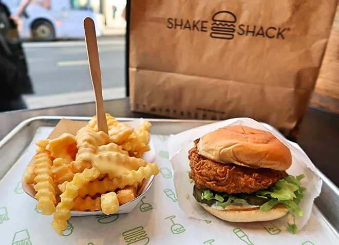 Shake Shack คือ ร้านเบอร์เกอร์ฟาสต์ฟู้ดตัวท็อปจากสหรัฐอเมริกา ประวัติไม่ธรรมดาเลย คือ เริ่มจากเป็นแค่รถเข็นขายฮ็อตด็อกใน Madison Square Park (New York) และยังมีเมนูไก่ทอดยัดแซนด์วิช ที่รสชาติอร่อยใช้ได้