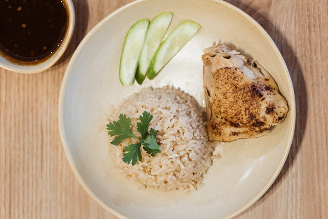 ที่สำคัญ ไก่ที่นี่ไม่มีการสับหรือทุบจะเสิร์ฟมาเป็นชิ้นแบบเนื้อแน่นๆ ไม่ว่าจะเป็นส่วนอก น่อง หรือสะโพก รวมถึงไฮไลท์คือการ”พ่นไฟ” บนหนังไก่ กลายเป็นเมนู ข้าวมันไก่หนังกรอบ ซิกเนอเจอร์ของร้านที่ลูกค้าให้ความสนใจมาก