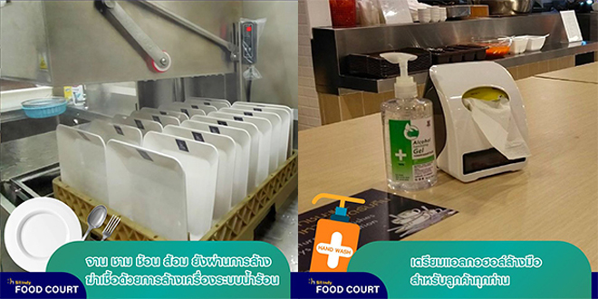 อีกทั้งภาชนะในใส่อาหาร จาน ชาม ช้อนส้อม ผ่านการล้างฆ่าเชื้อด้วยการล้างระบบน้ำร้อน 85 องศา เข้มงวดกับสุขอนามัยในการปรุงอาหารของผู้ประกอบการทุกร้านค้า การสัมผัสเนื้อสัตว์ดิบ และไข่ดิบ ในระหว่างการปรุงอาหาร ผู้สัมผัสอาหารได้สวมถุงมือยาง เพื่อป้องกันเชื้อโรคทุกครั้ง รวมถึงการปรุงอาหารทุกชนิดของร้านอาหารใน Food Court จะปรุงสดใหม่อยู่เสมอ