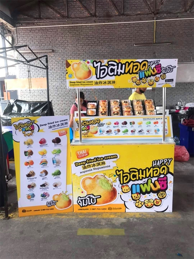 เน้นการขายส่งวัตถุดิบไอติมทอดที่มีกว่า 7 รสชาติ สามารถนำไปขายในราคาลูกละ 20-30 บาท ขึ้นอยู่กับทำเลสถานที่ตั้งและการตกแต่งท็อปปิ้งต่างๆ อุปกรณ์ในการเปิดร้านสามารถหาซื้อได้ทั่วไป