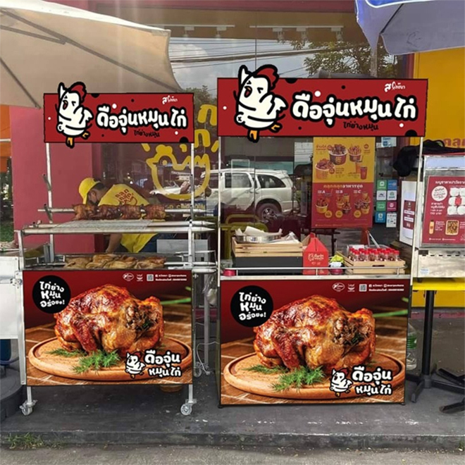 ยกตัวอย่าง ต.เนื้อย่าง ที่ลงทุนแค่ 3,000 บาท ได้อุปกรณ์เนื้อพร้อมย่างกว่า 500 ไม้ ขายไม้ละ 10 บาท ขายวัตถุดิบชุดนี้หมด กำไรทันที 2,000 บาท หรือจะเลือกลงทุน แฟรนไชส์ดือจุ่นหมุนไก่ บาย ส.โภชนา ที่ตอนนี้มีโปรโมชั่น ค่าแฟรนไชส์เพียง 3,900 บาท ได้อุปกรณ์และวัตถุดิบพร้อมนำไปปิ้งขายได้ทันที