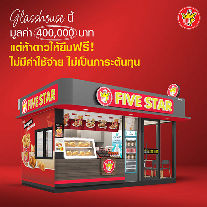 “ธุรกิจห้าดาว” แฟรนไชส์ร้านไก่ย่าง ไก่ทอด ภายใต้การดำเนินงานของบริษัท ซีพีเอฟเรสเทอรองท์ แอนด์ ฟู้ดเชน จำกัด ถือเป็นแฟรนไชส์ร้านอาหารที่มีประสบการณ์การดำเนินกิจการในไทยมายาวนานกว่า 37 ปี มีการเติบโตอย่างต่อเนื่องมากกว่า 9,000 สาขาครอบคลุมพื้นที่ทั้งในประเทศและต่างประเทศ ซึ่งถือเป็นเหตุผลที่แฟรนไชส์ห้าดาวได้รับความสนใจในการลงทุน เพราะแบรนด์มีชื่อเสียง ใช้เงินลงทุนเริ่มต้นแค่หลักหมื่น อีกทั้งยังมีการพัฒนาร้านแบบ Glass House ด้วย