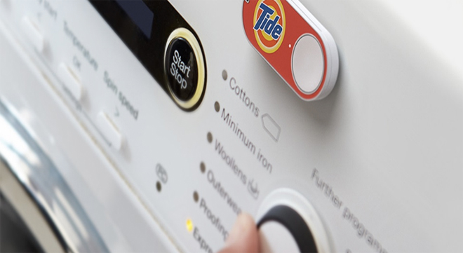 Amazon Dash Button นั้นเปิดให้ผู้บริโภคเพื่อให้การสั่งซื้อสิ้นค้าเครื่องใช้ในครัวเรือนที่ซื้อประจำทำได้ง่ายเพียงกดปุ่มสั่งซื้อ เช่น ต้องการจะซื้อผงซักฟอก ก็ทำได้เพียงกดปุ่มที่ติดอยู่บนเครื่องซักผ้า