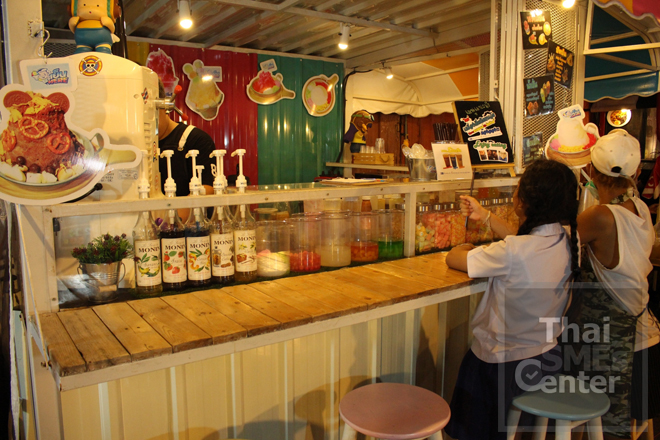 การจัดร้านนอกจากขายลูกค้าแบบเดินรับประทานแล้วก็ควรมีมุมไว้ให้ลูกค้าได้นั่งทาน ราคาขายของน้ำแข็งไสนั้นประมาณ 30-40 บาท/ถ้วย ทางที่ดีก็ควรมีท็อปปิ้งที่หลากหลายไว้เป็นทางเลือกที่มากขึ้นให้กับลูกค้าด้วย