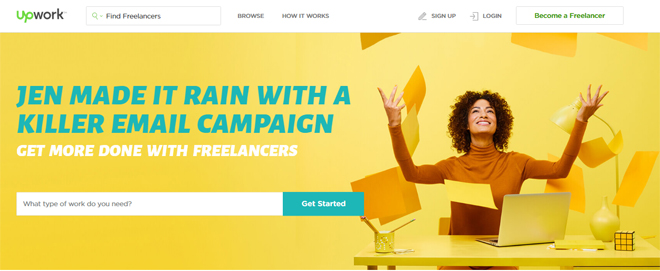 ไม่ว่าจะเป็นผู้ออกแบบเว็บไซต์ กราฟิก การตลาด การขาย ฯลฯ ซึ่งใน Up Work ได้รวบรวมคนเก่งไว้มากมาย บุคคลเหล่านี้น่าจะสามารถช่วยเหลือธุรกิจของคุณให้เจริญเติบโตได้ไม่ยากมากนัก