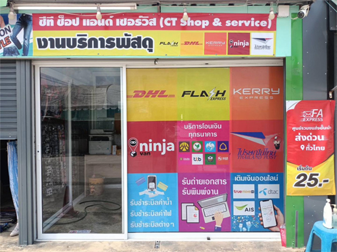 แฟรนไชส์ไปรษณีย์เอกชน รับส่งพัสดุที่กำลังมาแรงในยุคนี้ ให้บริการด้านขนส่งโดยการรวบรวมขนส่งชั้นนำไว้ในร้านเดียว พร้อมบริการด้านสินเชื่อธนาคาร สินเชื่อทะเบียนรถ งานประกันภัย งานเอกสาร รับชำระบิลต่างๆ การโอนเงิน หลากหลายบริการในร้านเดียว บริษัทมีเป้าหมายในการขยายสาขาให้เข้าถึงทุกตำบลในประเทศไทย เพื่อให้บริการต่างๆ เหล่านี้เข้าถึงทุกกลุ่มลูกค้า สร้างความสะดวกสบายให้กับผู้ที่ต้องการใช้บริการ ปัจจุบันมีมากกว่า 1,701 สาขาทั่วประเทศ