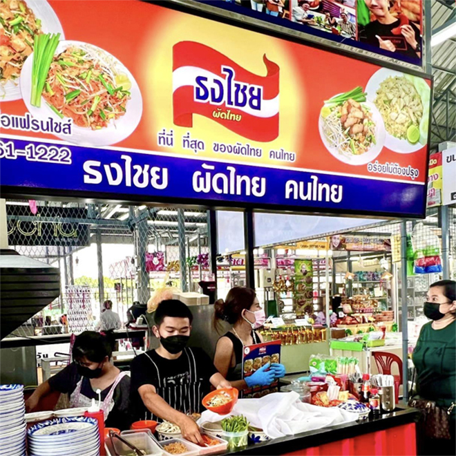 แฟรนไชส์ Street Food รถเข็นที่คงความเป็นเอกลักษณ์ของคนไทย “ธงไชย ผัดไทย” เส้นจันท์ดี น้ำซอสอร่อย ขายง่าย ลงทุนต่ำ ความเสี่ยงต่ำ รายได้ดี ไม่มีจำกัด เอกลักษณ์ผัดไทยสูตรเฉพาะ มีเมนูผัดไทยกว่า 12 เมนู หลากหลายรสชาติที่ได้รับการยอมรับจากลูกค้าว่า ได้มาตรฐานความอร่อยจริง คุณภาพเส้นจันท์ที่ดี และรสชาติที่ถูกใจคนไทยและชาวต่างชาติทุกคน รับรองว่าถ้าใครได้มากินแล้ว ต้องบอกต่อเลยว่า ที่นี่ที่สุดของผัดไทย คนไทย