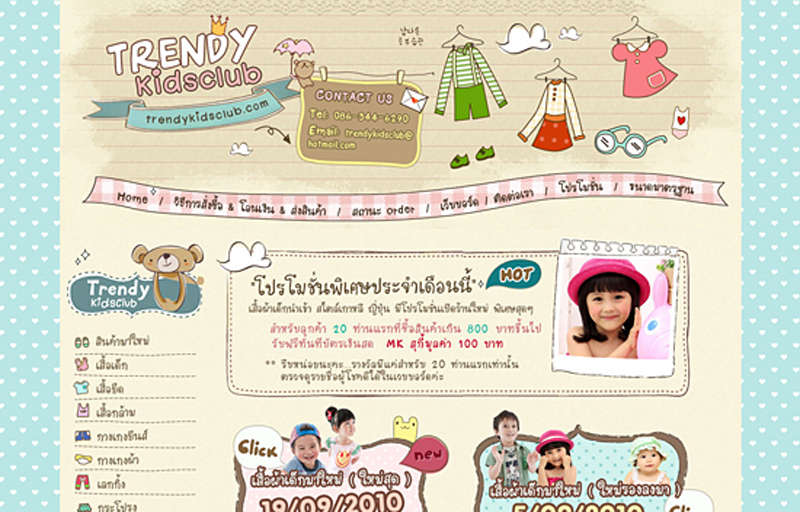 เหมือน trendykidsclub.com ที่ทำเว็บไซต์ขายเสื้อผ้าเด็กภายในคอนเท้นต์ที่มีสีสันน่าสนใจแบบดึงดูดเด็กๆได้ดีการลิงค์จากหน้าหลักไปยังรายการสินค้าหรือการสร้างหมวดหมู่สินค้าให้คนเลือกชมได้ง่ายขึ้น ทำให้ผู้เข้าชมสามารถตัดสินใจเลือกซื้อได้โดยง่าย ก็ทำให้เพลิดเพลินในการช็อปปิ้งออนไลน์ได้เป็นอย่างดี