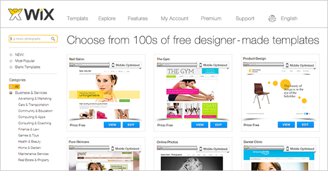 เลือกเสร็จแล้วก็เลือกเทมเพลตให้เหมาะสม กด edit รอโหลดสองสามนาที ก็เริ่มมาปรับตกแต่งได้ตามใจชอบ ตรวจสอบความสวยงามได้ที่ปุ่ม Preview เมื่อพอใจก็คลิก Publish แต่โดเมนที่ได้จะเป็นติดชื่อของ wix.com